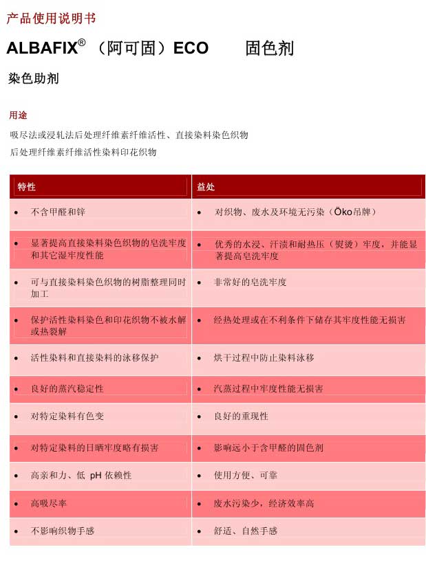 Sirrix® ANTOX liquidThe new chelating dispersant can be widely used in the continuous treatment of cotton and linen fabrics to prevent catalytic damage and the oxidation of cellulose, and also helps tLufibrol ® FE